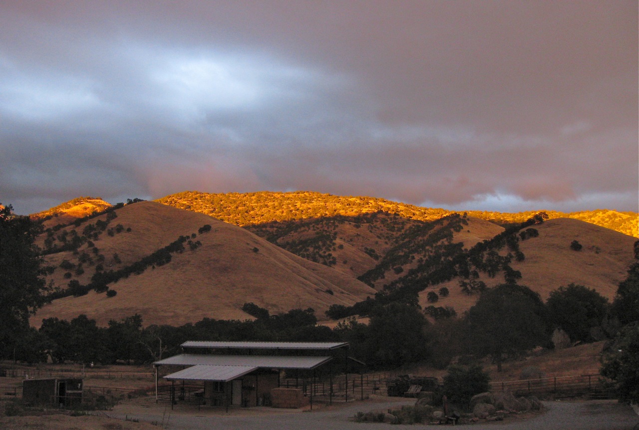 One last peek of the sun setting under cloudy skies. A dry and windy, errant storm system passed over us yesterday bringing high temperatures down into the low-70s today. So damn cool this morning we wished for jackets, but actually got two days’ work done as we continue to gather and wean our calves.