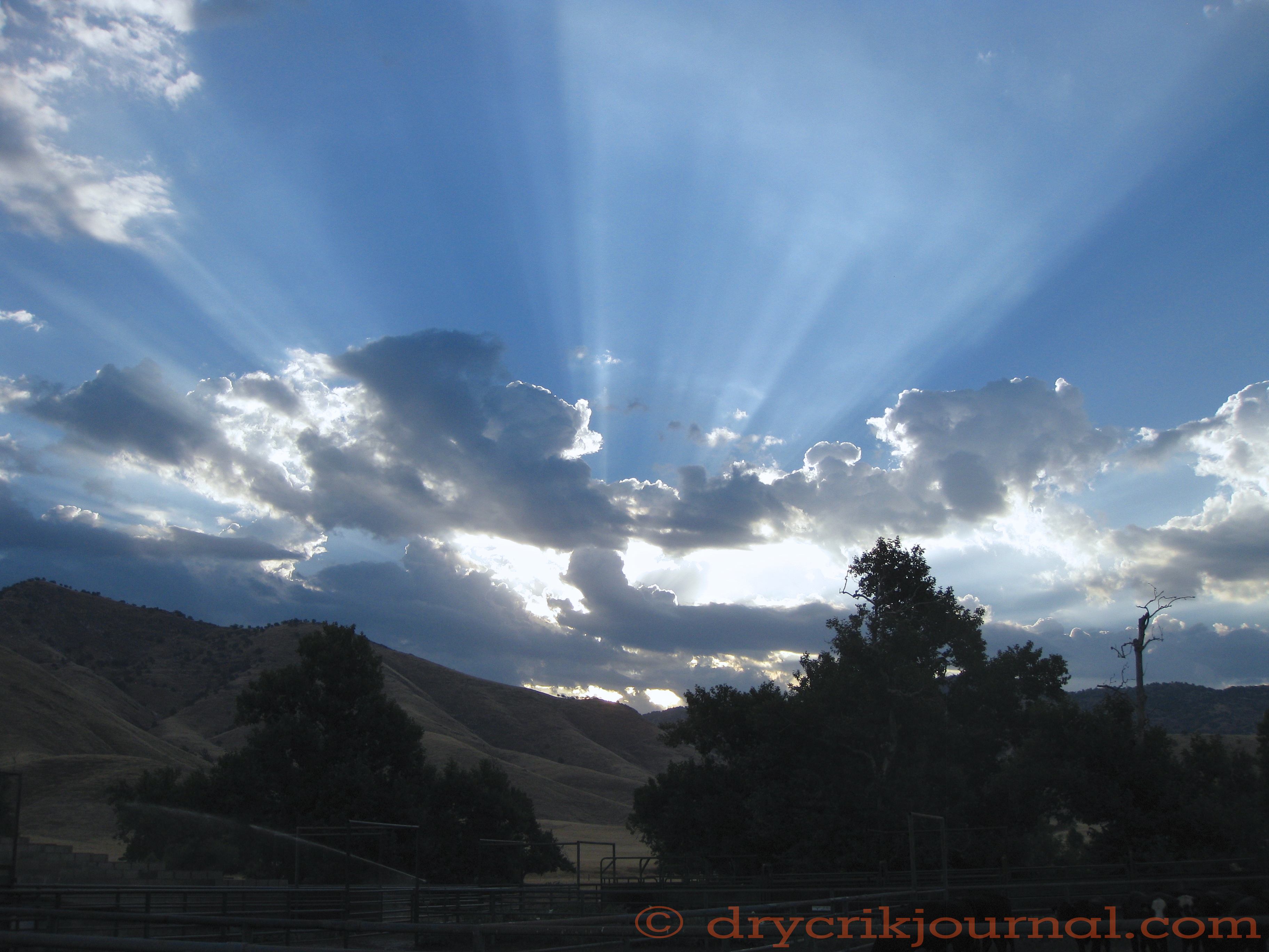 More than a payday, this glorious morning at our shipping corrals on August 22, 2012 as we wait to weigh the steers in the pen, sprinkler running to keep the dust down.