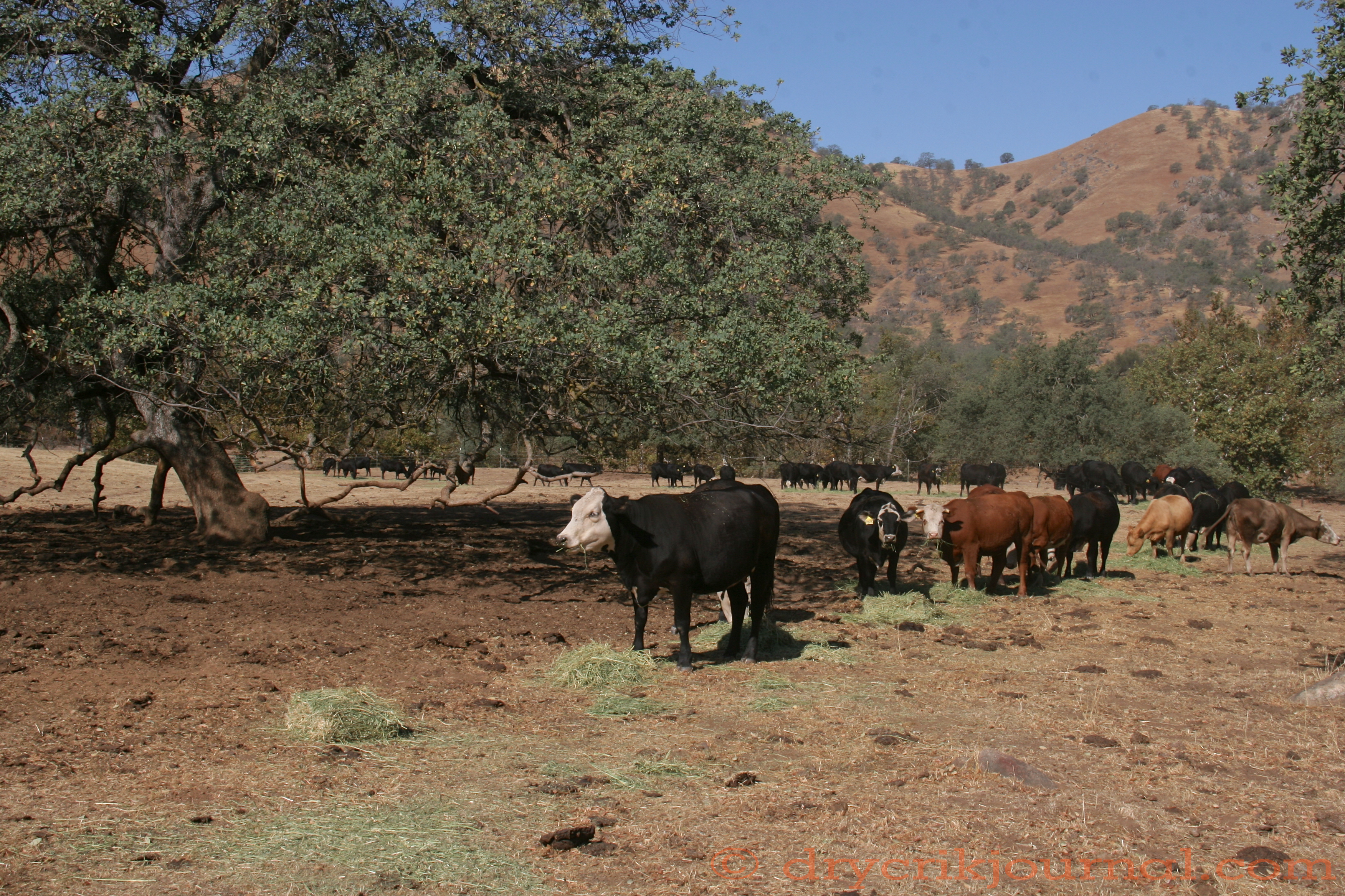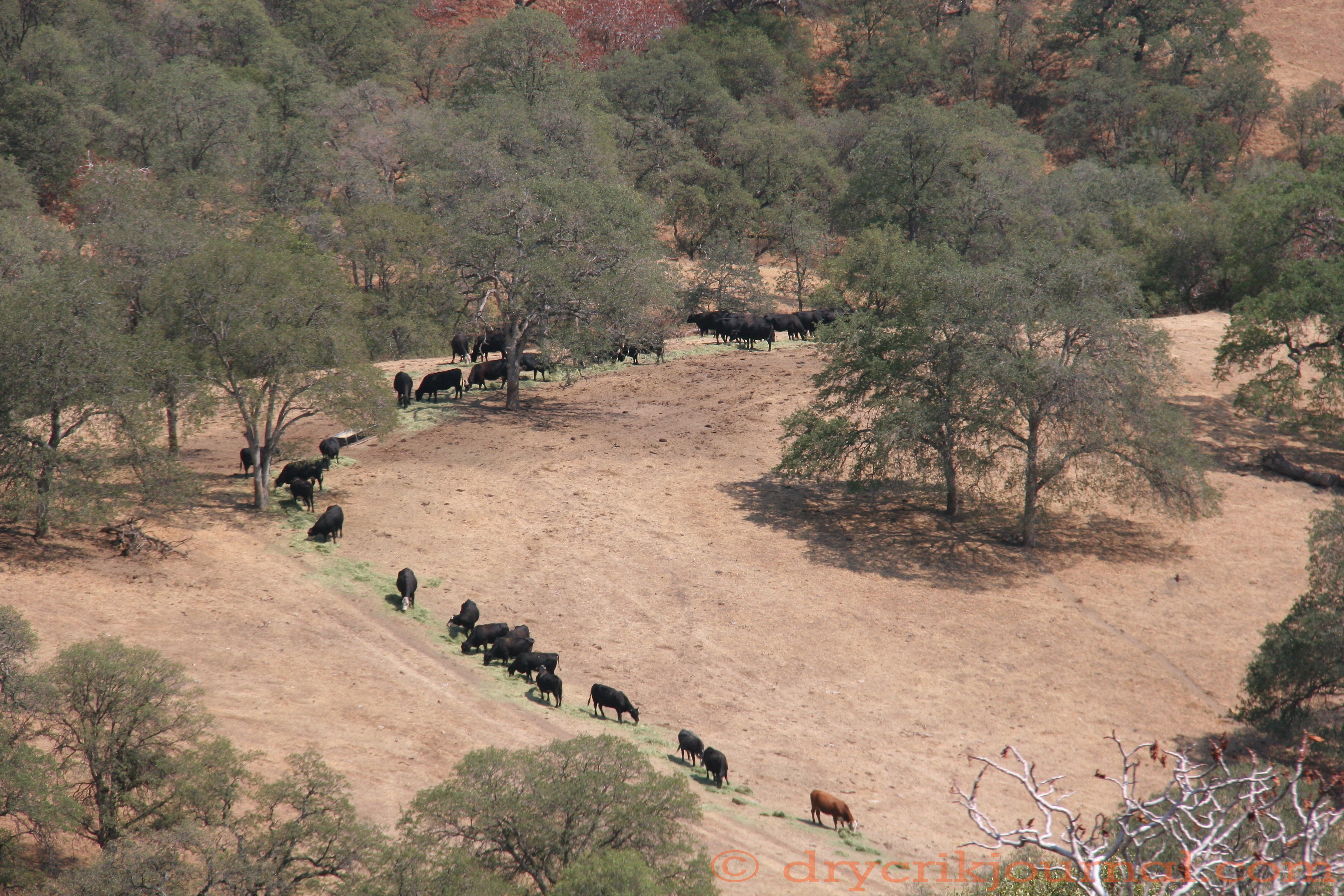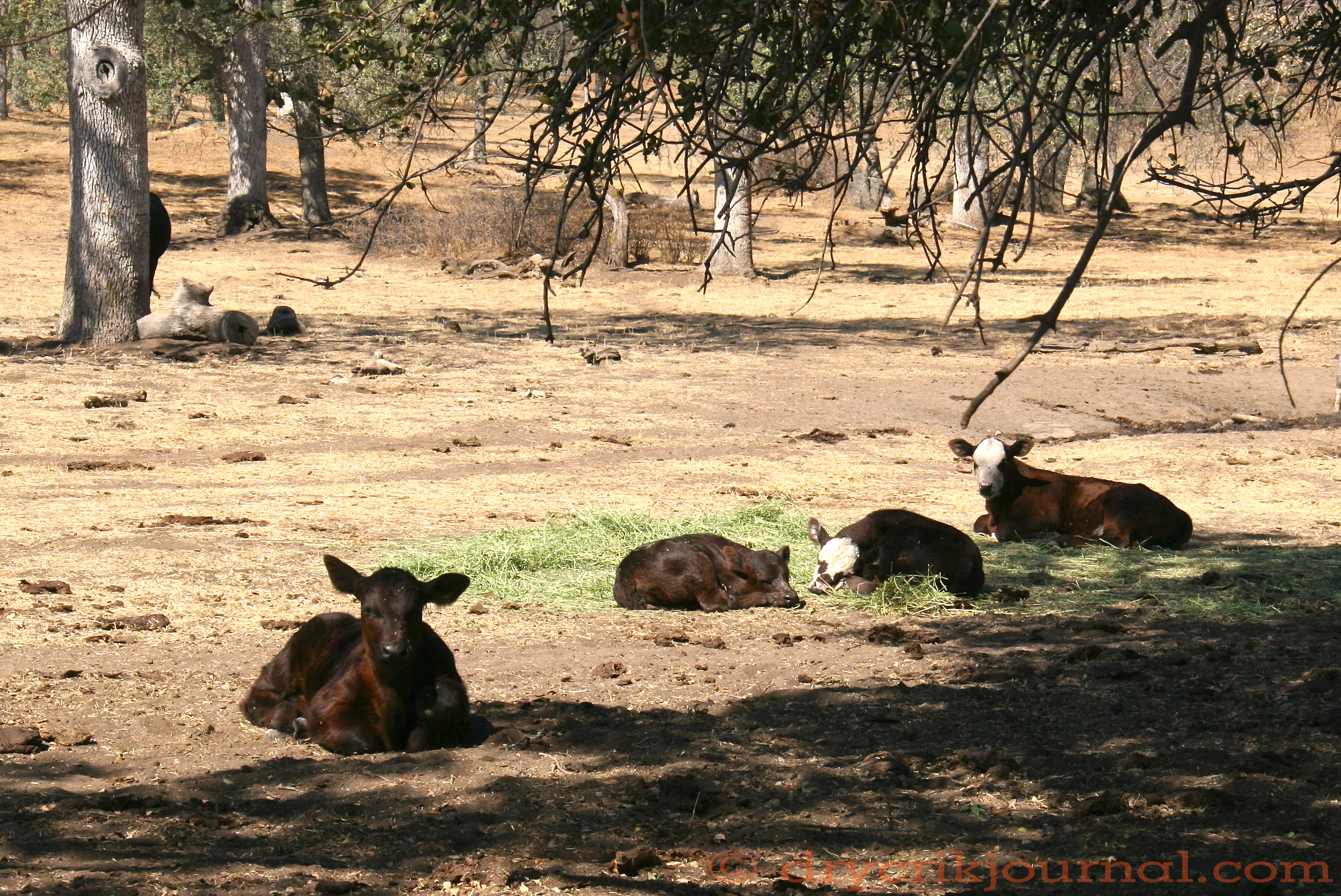 What cows we saw we’re cleaning up alfalfa hay, about 40 head in a five-mile stretch, half of which had calves. They were thin like most cows in Tulare County, but obviously not neglected, most with too much belly to have not been fed on a regular basis.