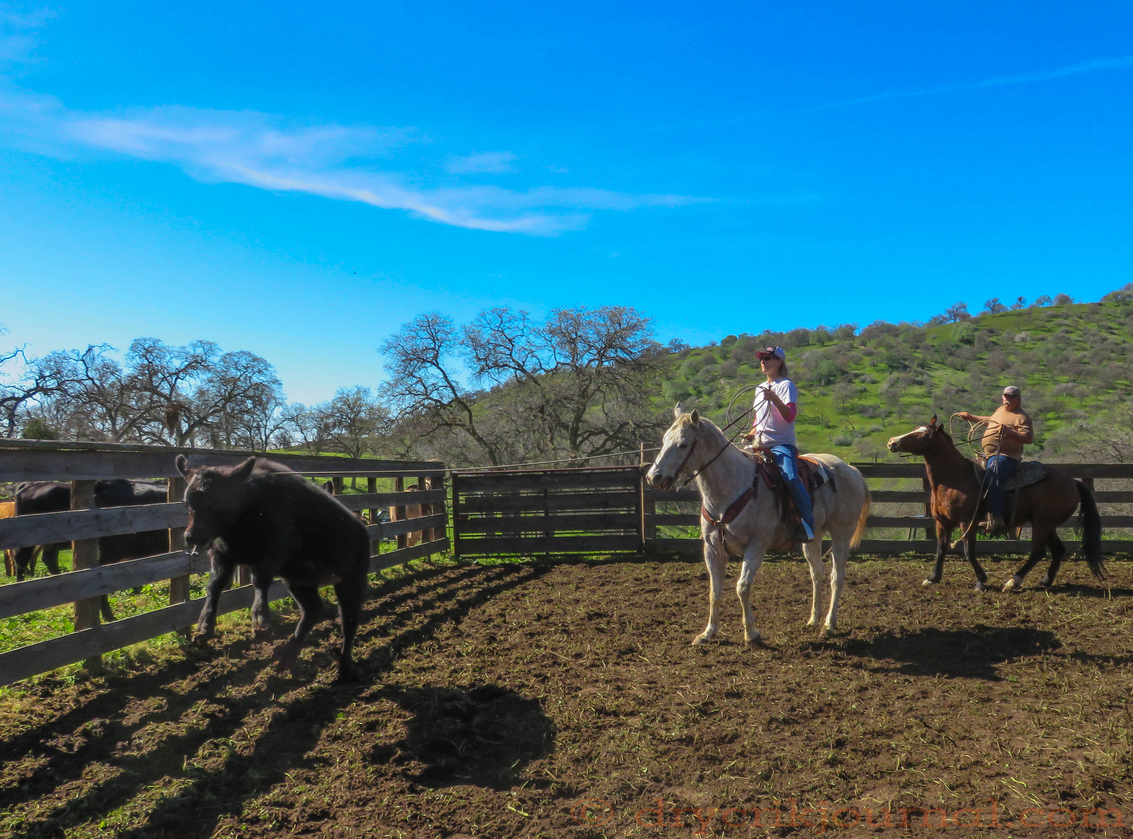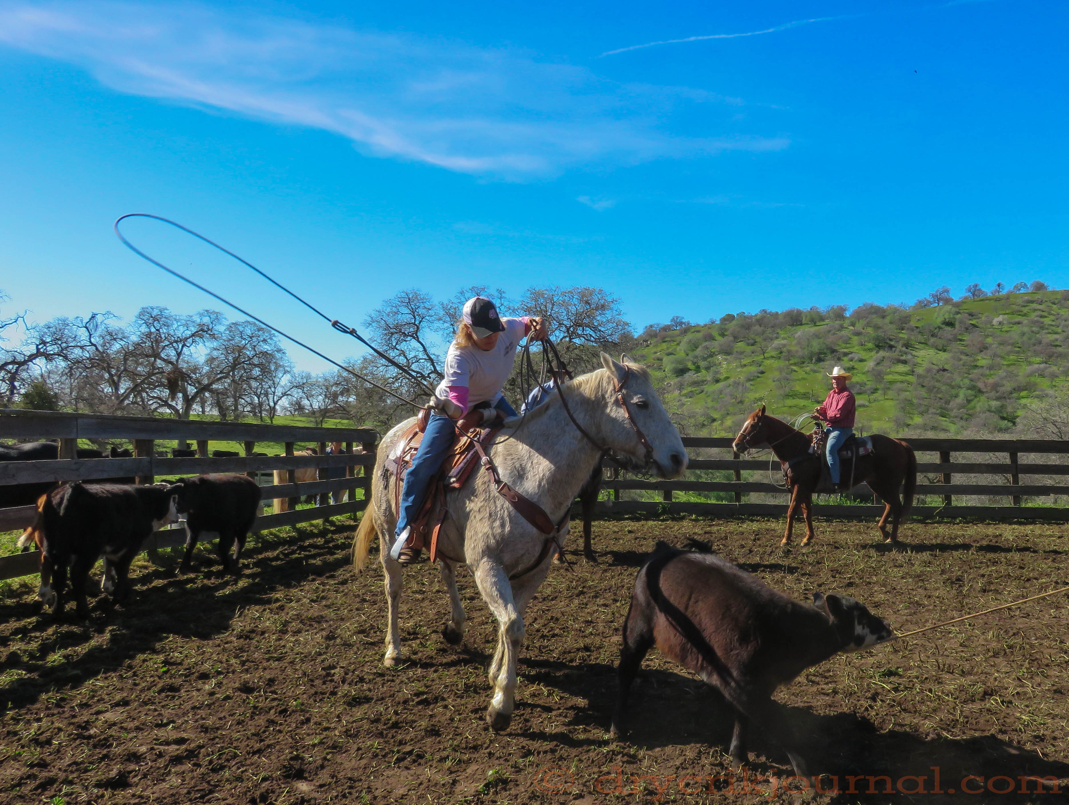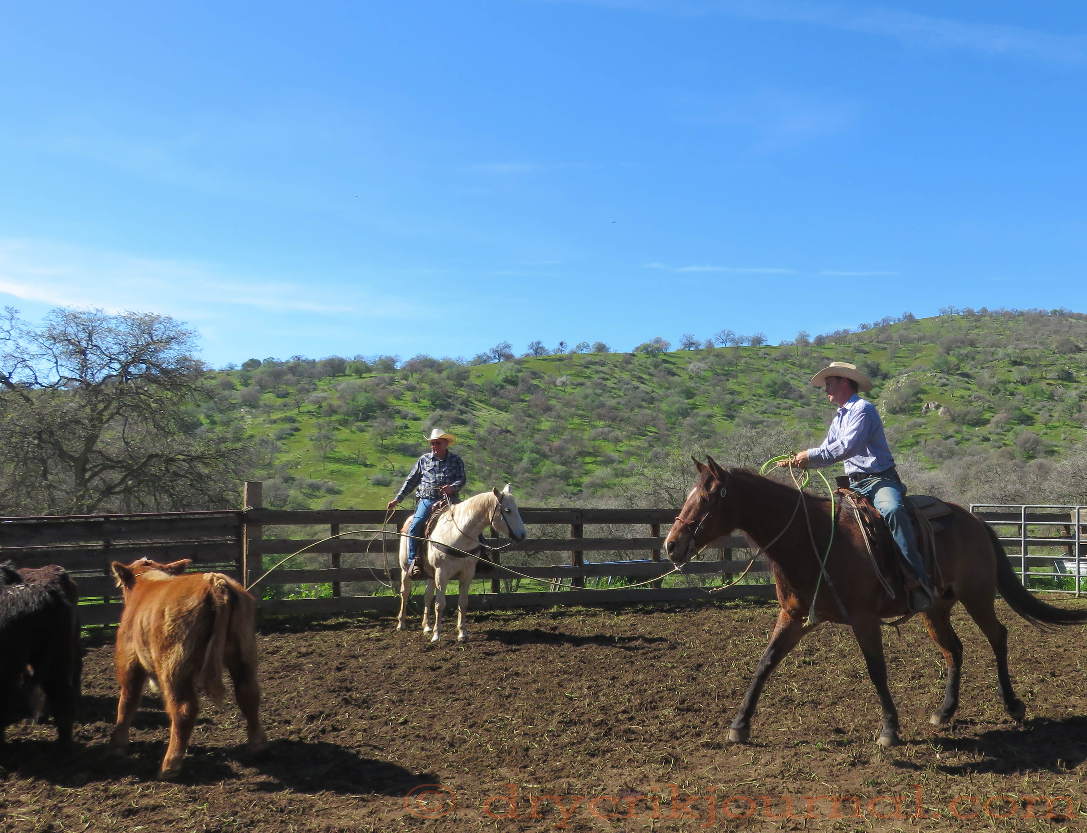 Calm and steady, we have acquired an efficient routine of ropers and ground crew. Divided into two groups of ropers so arms and horses have time to rest between bunches, there’s always time to visit.