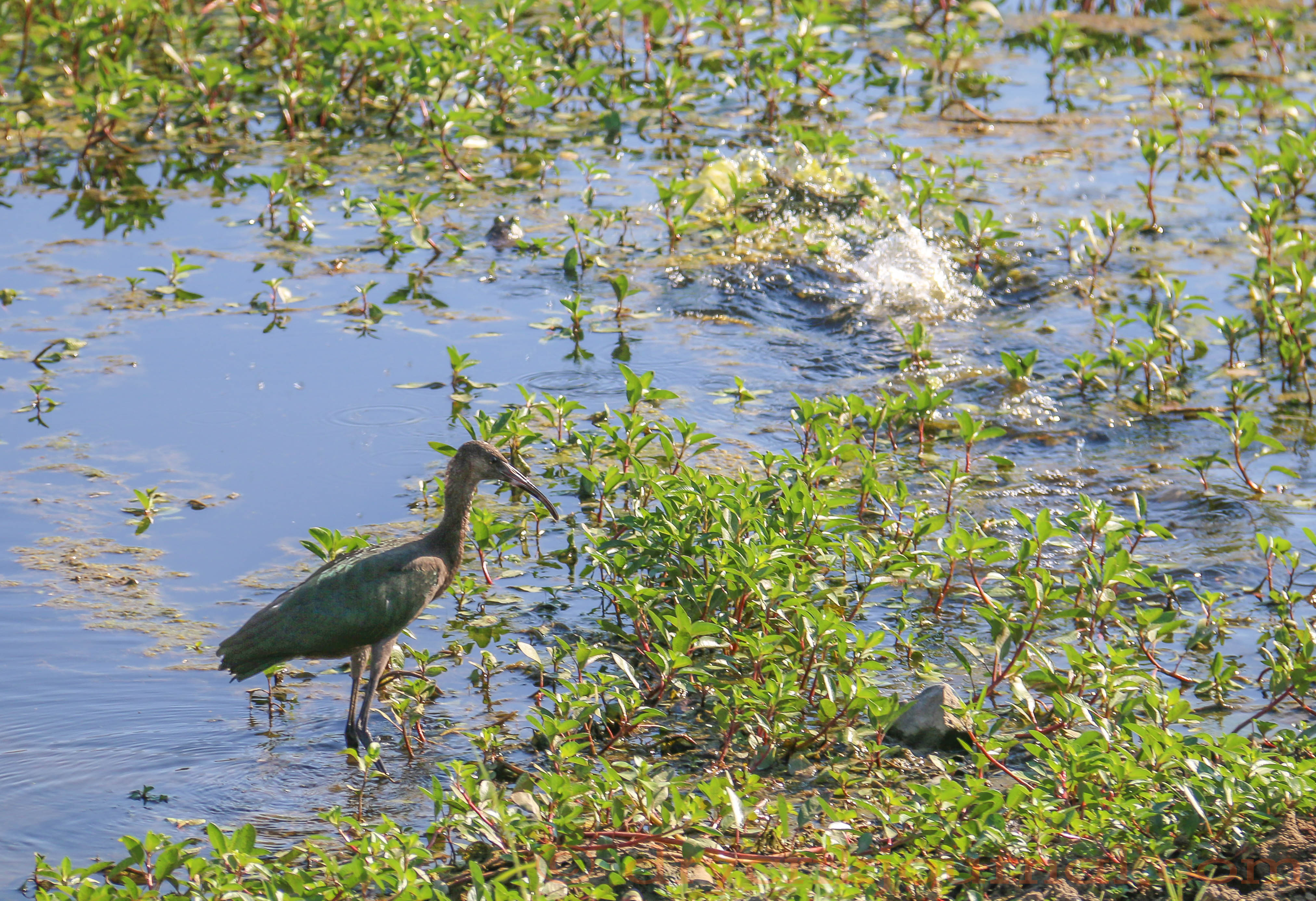 Perhaps this Glossy Ibis arrived with the monsoonal flow out of the Caribbean last week, as they are common to the East Coast. Often referred to as Black Curlews, they are shaped differently than our plumper and partridge-like Long Billed Curlews and behave more like Great Egrets and Blue Herons as shallow wading birds, though smaller than both. Try as I might to record this sighting with ebird, I failed. What distribution maps I found indicate no sightings in Central California. Amazing what you see when irrigating!
