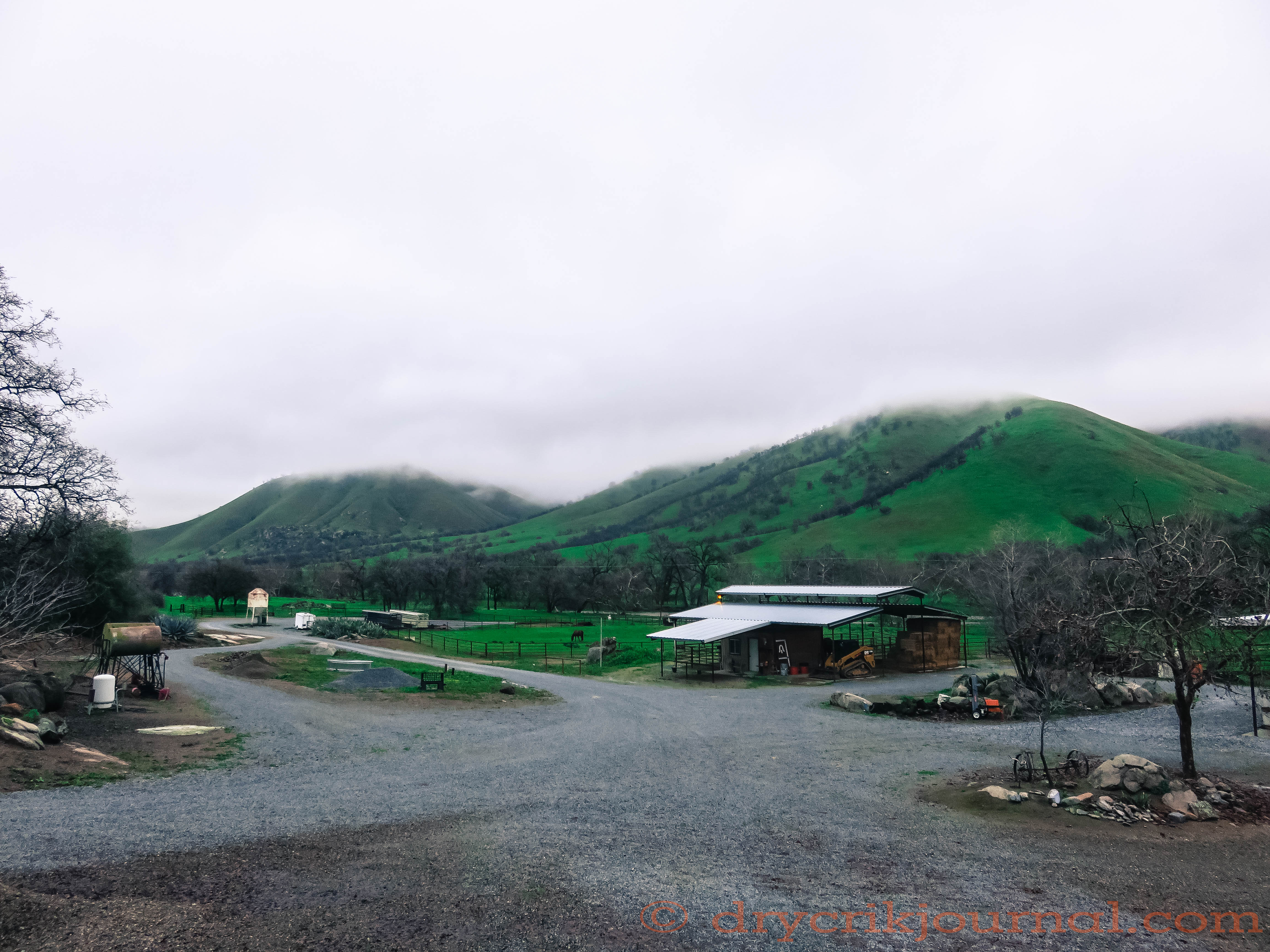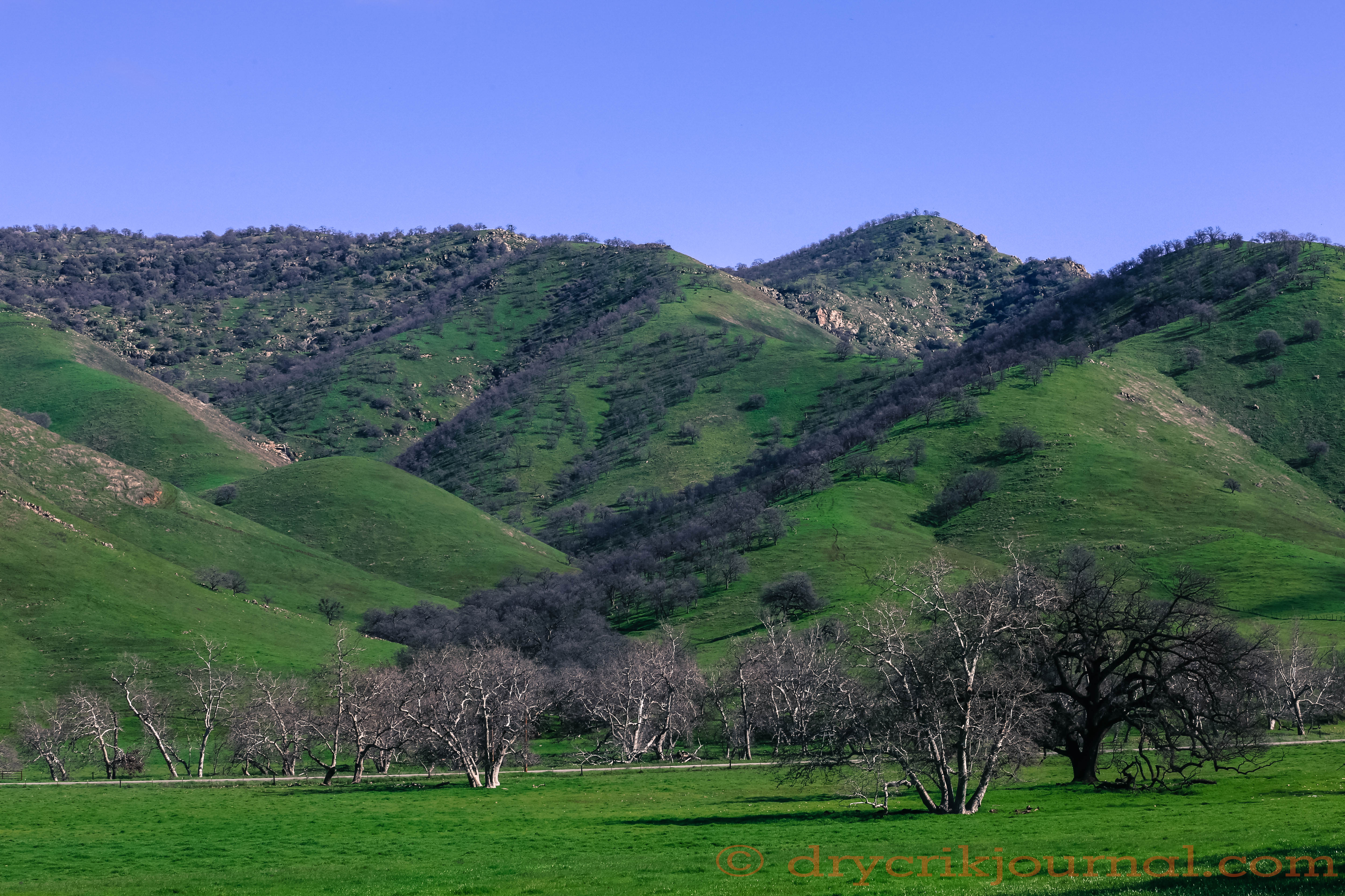 We’ve essentially been sequestered to the house since returning from Elko, gray and rainy days—water leaking, standing, running around us, creek, once again, too high to cross in the Kubotas, nowhere for a pickup to go without tearing up the roads or getting stuck. But yesterday, the sun illuminated hillsides so green that you had to squint for a while before completely opening them. Glorious, indeed.
