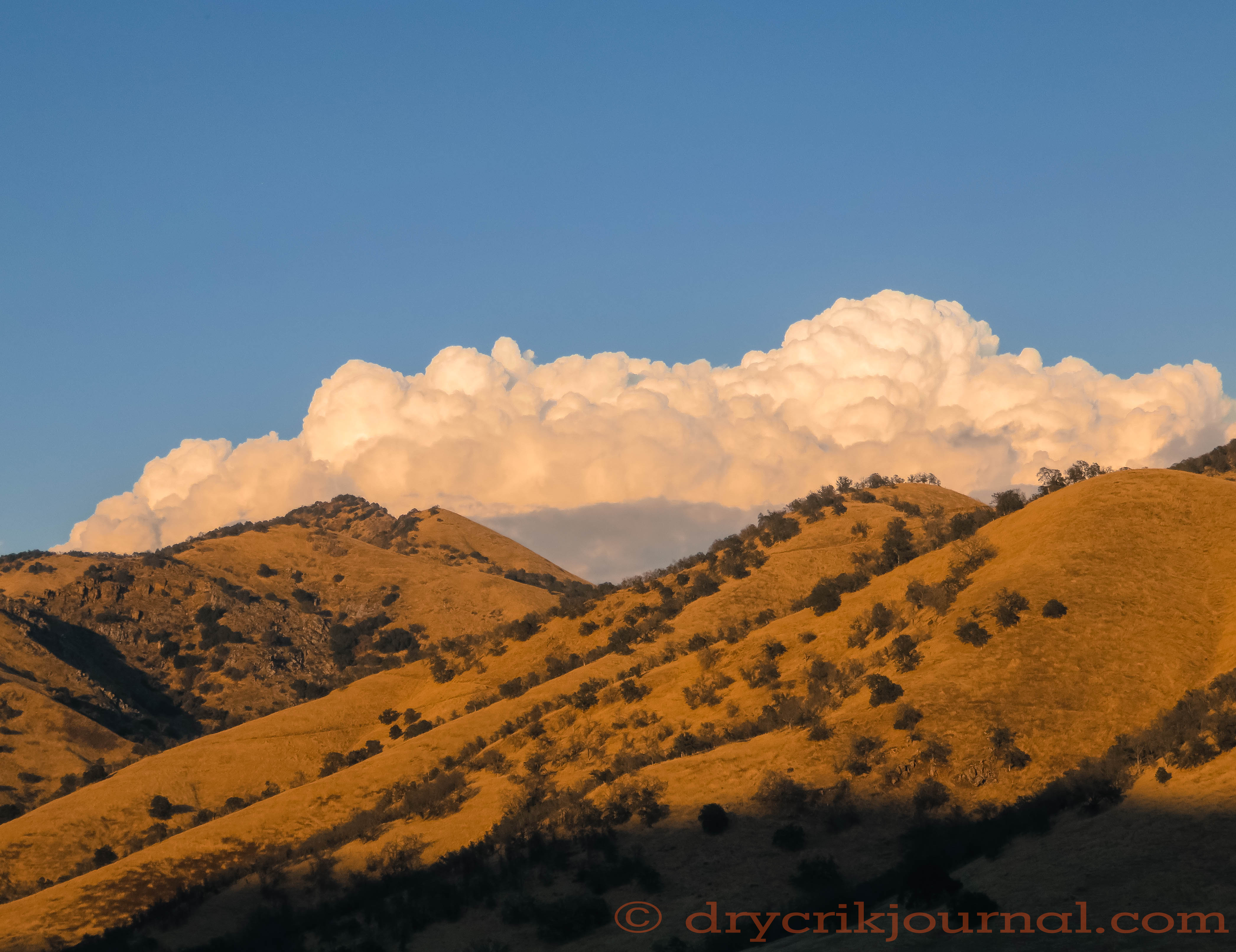 We awoke to rain yesterday morning, a refreshing weather change that brought snow to the high country and 0.39″ of rain to Dry Creek.
