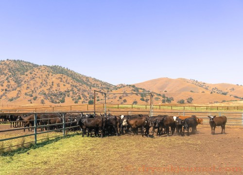 Thursday morning, these steer and heifer calves leave for Connell, Washington for Agri-Beef’s Snake River Farms’ program to be marketed as American Kobe Beef where they’ll be fed for 400-500 days. This is our second load of Wagyu X calves and typically we take the calves from their mothers, weigh and sort steers from heifers, then load them immediately onto the truck. However, since we’ve increased the number of cows that we breed to the Wagyu bulls, the first-calf heifers are pastured in two different fields two miles away from our loading corrals and scales that requires us to haul the calves. Half of the calves pictured above were weaned Monday, the balance yesterday as they wait for the truck.