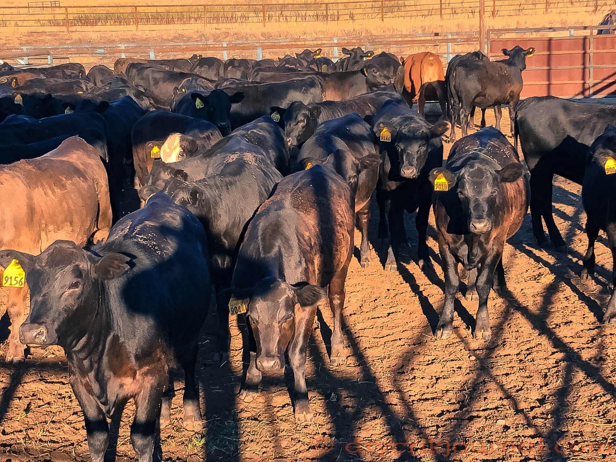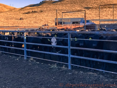 It was an easy gather this morning. Bob’s presence on this part of the ranch while irrigating and feeding with his Kubota has made these gentle heifer calves even more trusting and curious. I arrived by Kubota headlights with a couple of bales of hay ahead of the cowboys, Robbin, Terri, Allie and Bob, and had the bunch mostly gathered when the horses arrived to escort them to the corrals.