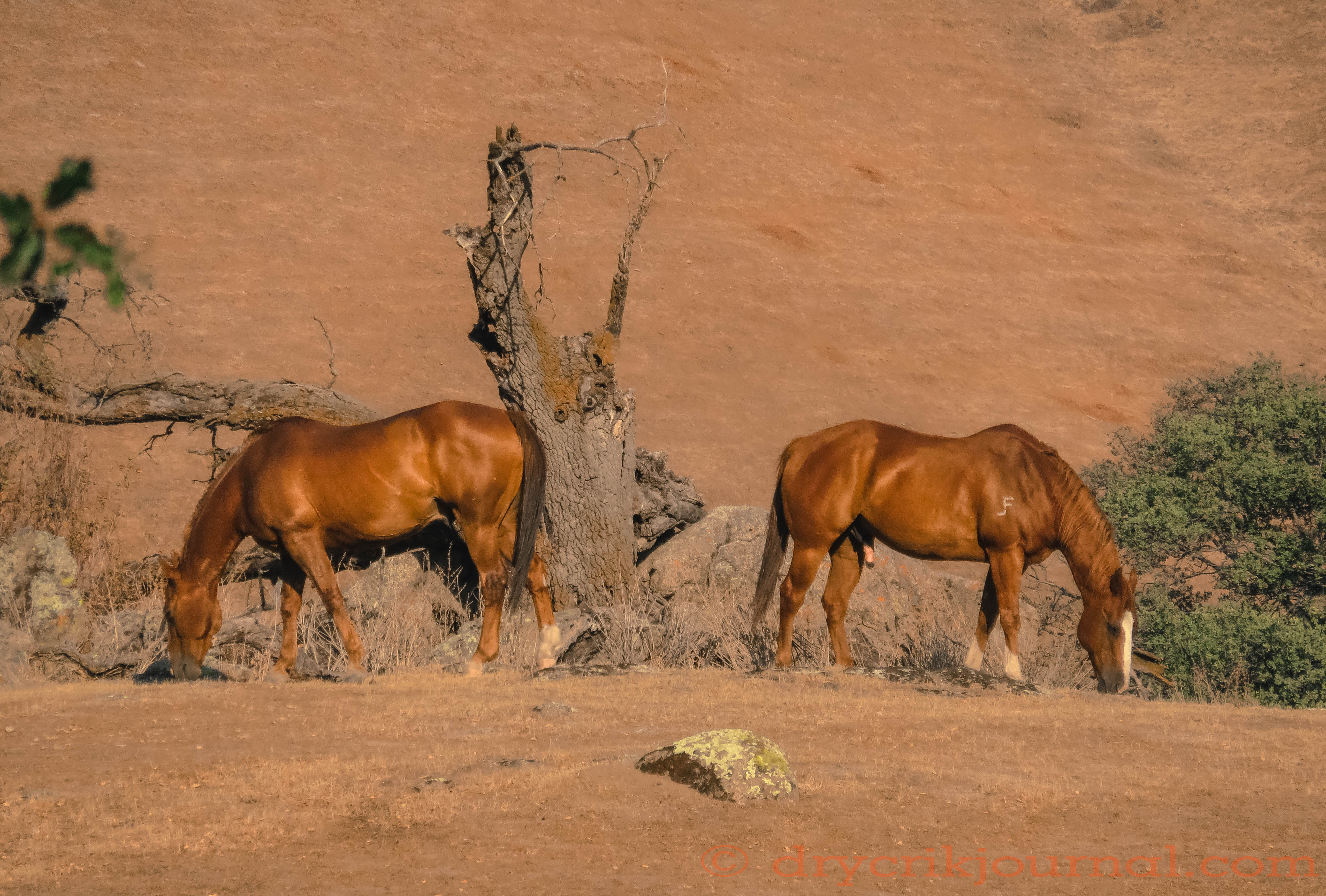 It’s not often that you see two different species of hawks in such close proximity to one another, calmly waiting on the edge of a water trough. But this morning while feeding the horses, they let me get close enough to use my ‘point and shoot’. I defer to the birders, but it looks to me like a Red Tail on the left and a Harrier Hawk on the right.