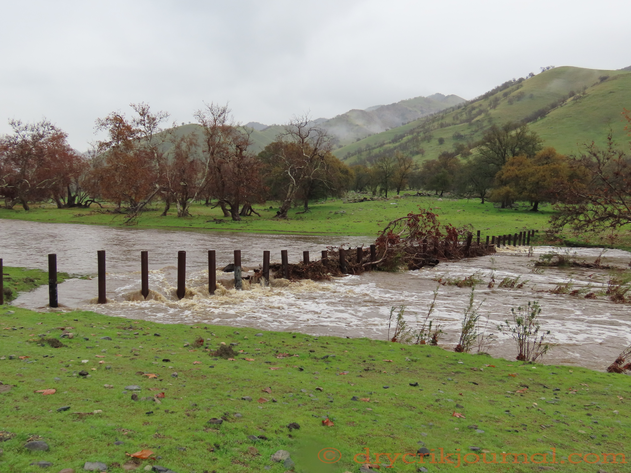 Flowing 962 cfs @ 8:00 a.m. at the brush catchers, Dry Creek peaked at 1,400 cfs @ 3:00 a.m., Badger having received 3.81″ upstream in the last 24 hrs. 1.61″ for us.