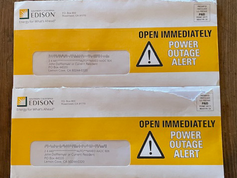 Of course, all this concern comes after PG&E’s bankruptcy when its transmission lines ignited numerous fires in Northern California after which nearly half of the state became a high fire risk area. Fire insurance doubled or tripled or left homes uninsurable. Edison will probably lobby the PUC to raise its rates to pay for all this maintenance it should have doing all along. C’est la vie.
