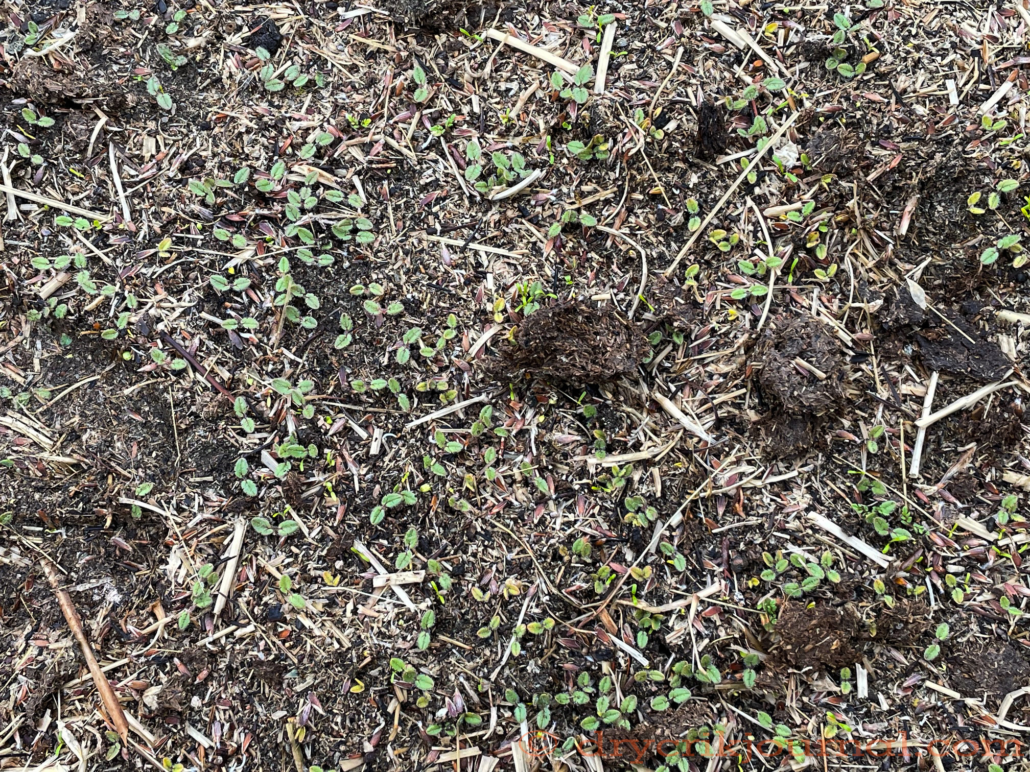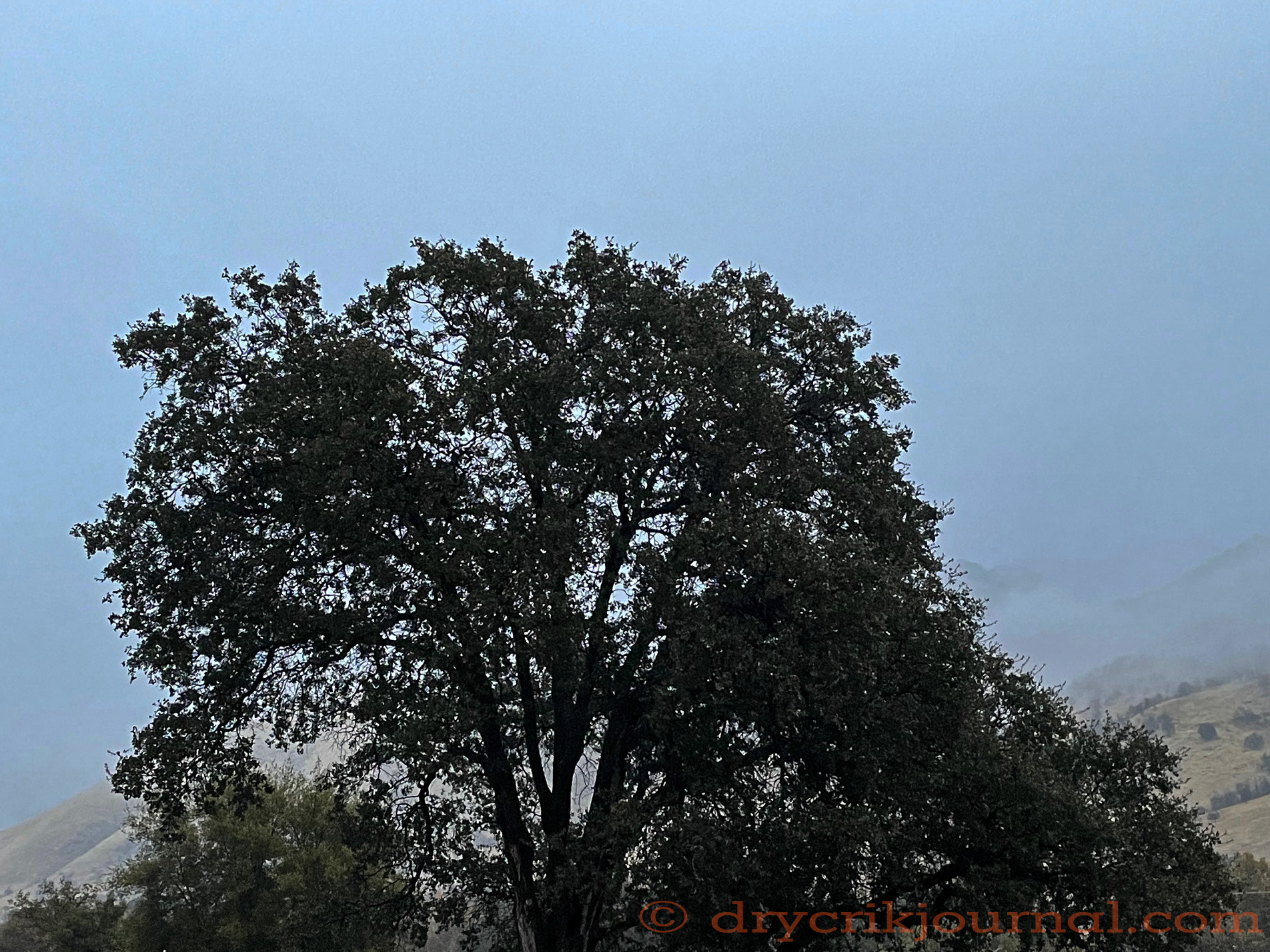 It’s chilly in the morning (40s), foggy in the Valley after the 1.81” we received from the tail of the Bomb Cyclone earlier this week. Normally, the ridge between Dry Creek and Antelope Valley keeps the fog out, allowing more sunshine for our fresh cotyledons. What a beautiful day, the sycamores are turning as winter knocks on the door.