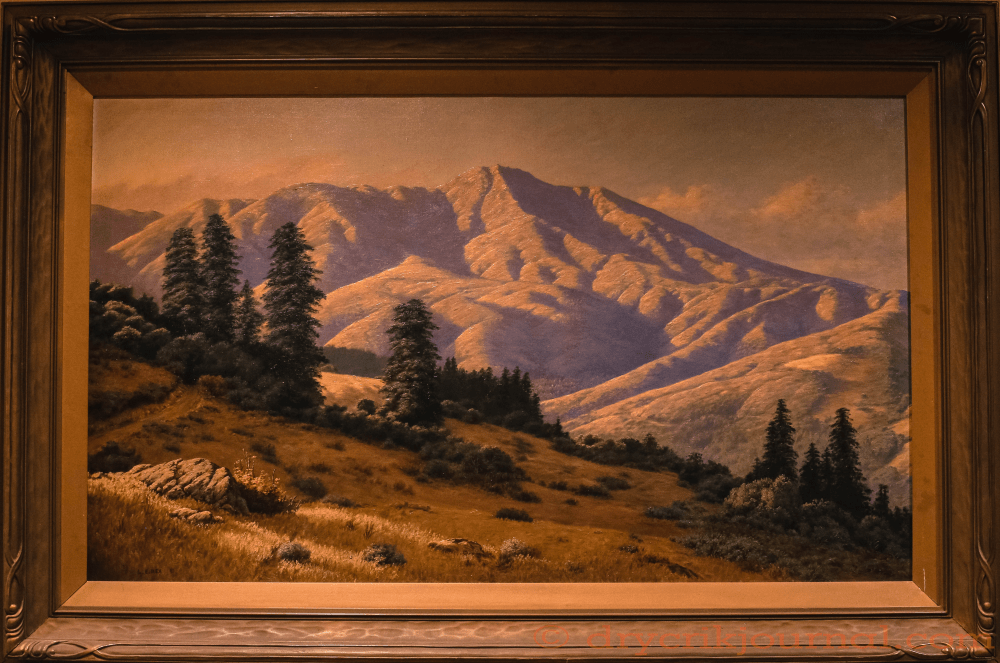 There are no windows on the south wall to let the sun’s heat into a hot summer room, but a 3’ x 5’ L. E. Rea painting framed of Mt. Tam I thought was Montana when I was a boy in my grandfather’s house hanging above the mantle over the blazing, hairy arms of grapevines pruned, hauled and piled for the winter by the barn with the remains of corrals for draft horses and mules back in the day—that my sister and I damned-near burned down playing with matches. The fire trucks came at dusk from town, sirens screaming closer before I ever saw the flames.