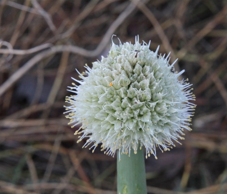A good part of the garden goes on without us, especially the weeds. Early morning light in bloom.