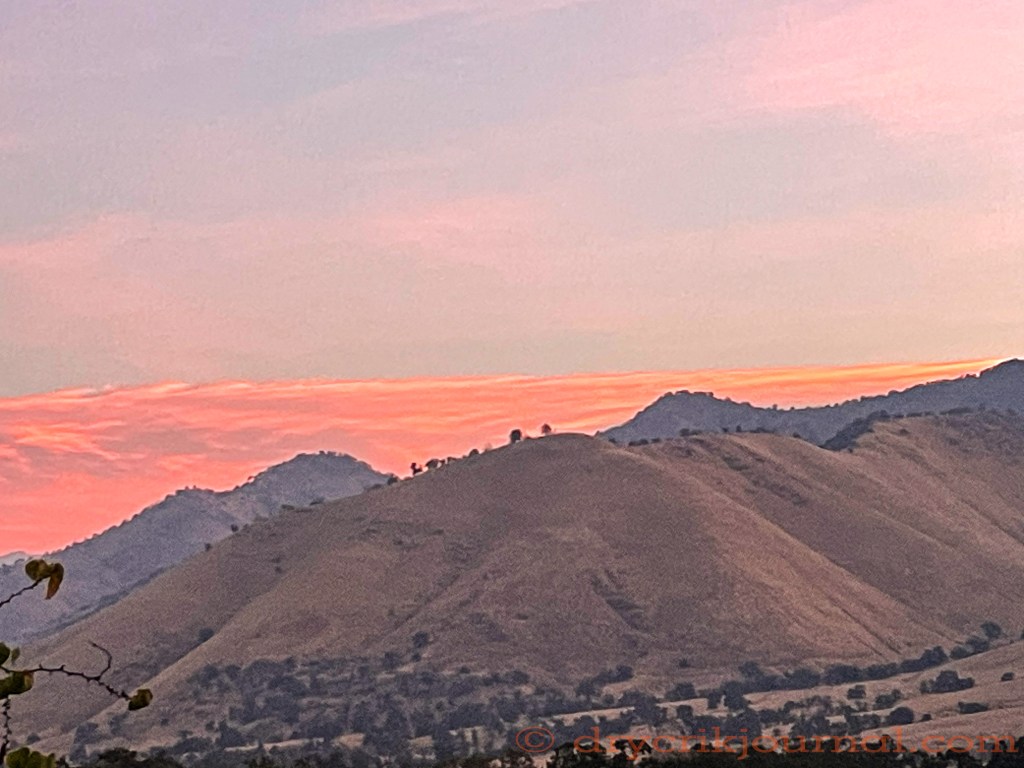 Far from the advertised Atmospheric River forecast, we are grateful for the much needed moisture overnight. Just a sprinkle when Robbin took this photograph yesterday evening as sunshine leaked through the approaching clouds.