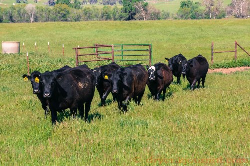 My sister and I circled the mountain pasture behind the house in the Kubota after opening the gates to the flat below for the first-calf heifers and their Wagyu X calves before we drive the bunch to our scales and processing corrals next week. The calves need to be revaccinated before we ship them in May to Snake River Farms to be finished as American Kobe Beef. Not quite the same as gathering a horseback, she managed to see a lot of country where the cattle had been before we finally found them—a steep, rough ride nonetheless.