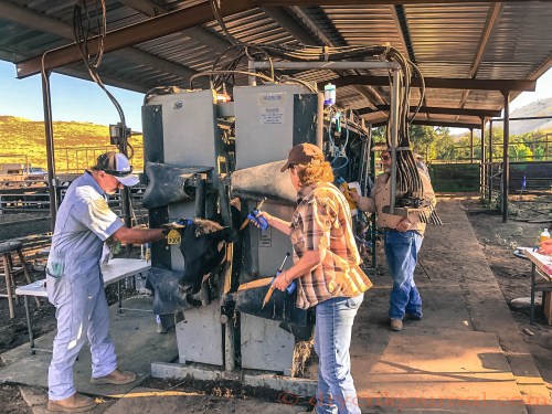Lots of hands and lots of syringes and applicators with less than a minute in the Silencer hydraulic chute.