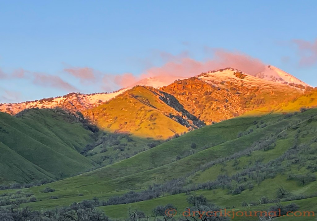The Paregien Ranch ranges from 2,000 to 2,600 with its own light blanket of snow now, time-released moisture soaking into the clay and granite ground that leaks down the smooth rock waterfalls of Ridenhour Canyon, adding to Dry Creek that peaked at 684 cfs last night, that probably washed out some of our watergaps replaced after January’s peak flow over 3,500 cfs.