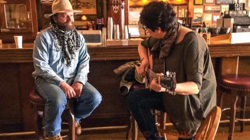 Sunday a.m. at the Pioneer was a special treat listening to Mike Beck and Denise Withnell make Robbin’s guitar sing above the goodbyes of poets and performers leaving for home. We brought the guitar to Elko so Denise would not have to wrestle her own on the airplane. She and Dave Wilke were backing-up several Sid Marty performances. (Oh what a fine singer, songwriter and poet he is!) The Canadians were a well-represented bunch that included Ian Tyson and a spectacular new voice to Elko, Colter Wall.