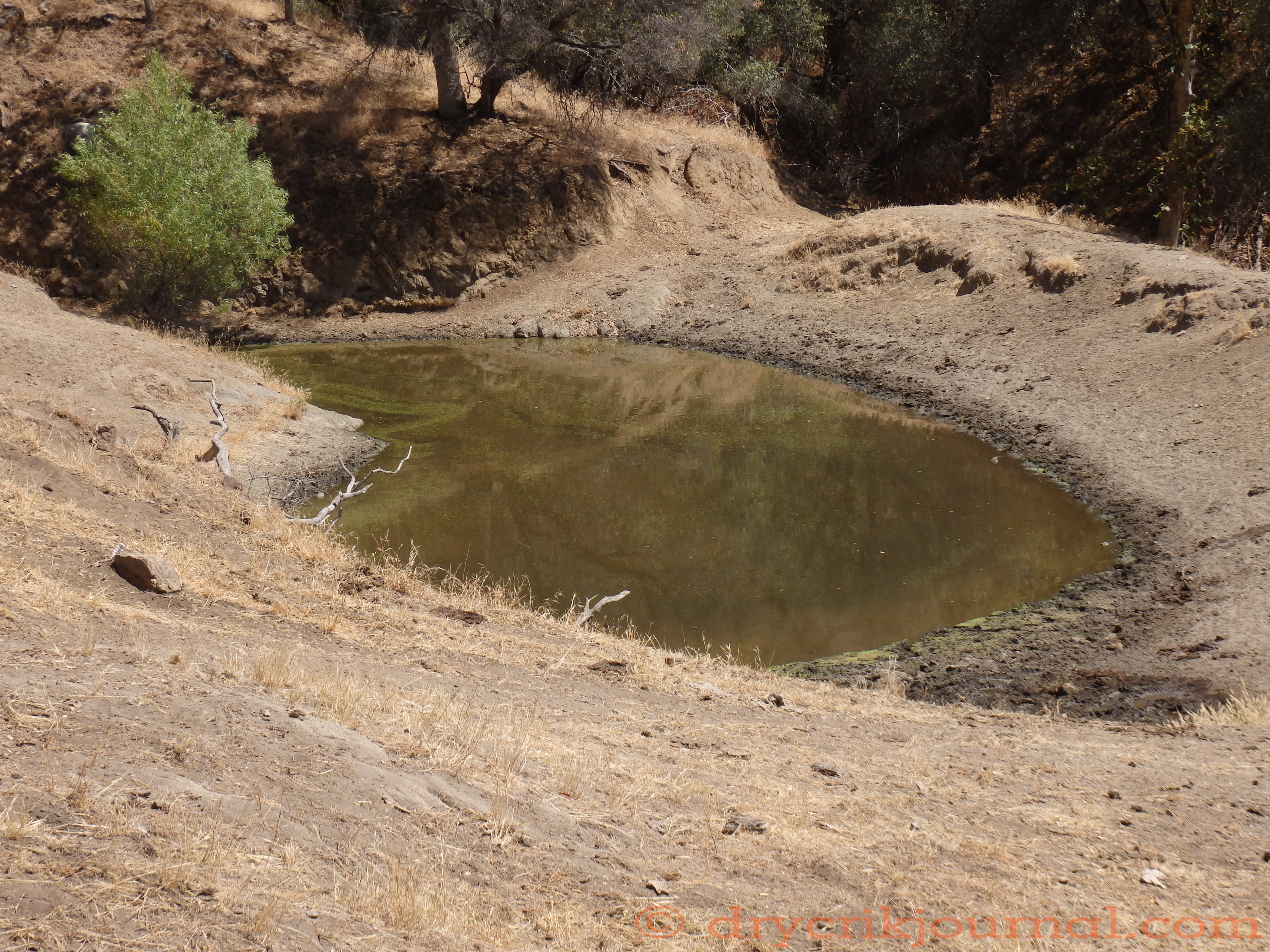 In Section 17, the shaded pool of water in Greasy Creek is holding remarkably well, water currently running at 1-2 gallons/minute for a couple of hundred feet to just above the fig trees.