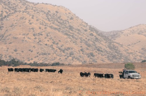 Currently, all that our steep hillsides have to offer is a short blond fuzz of dry grass that will soon be dust. I remember the drought of ’77 when the cows licked the grass seed to augment what hay we fed them. Knowing what’s ahead, we’ve begun gathering to wean early and have already sent a bunch of good cows to the kill plant, many of which had calves in their bellies. Due to the lack of snow in the Sierras, there’s little irrigation water to grow hay and the price is high, while cows aren’t bringing much money. Furthermore, stockwater from our natural springs in the upper country will be in short supply by fall——a perfect storm.
