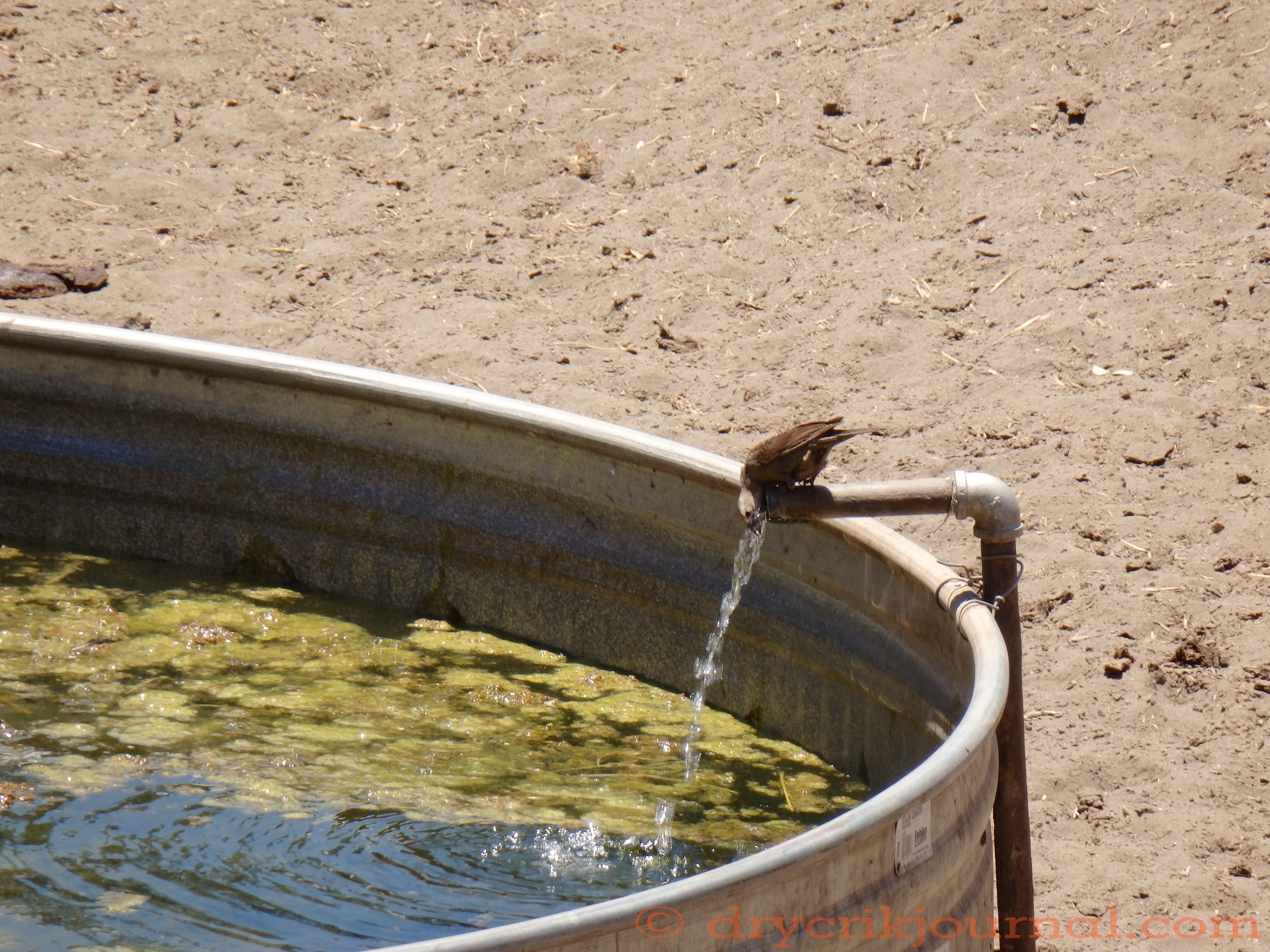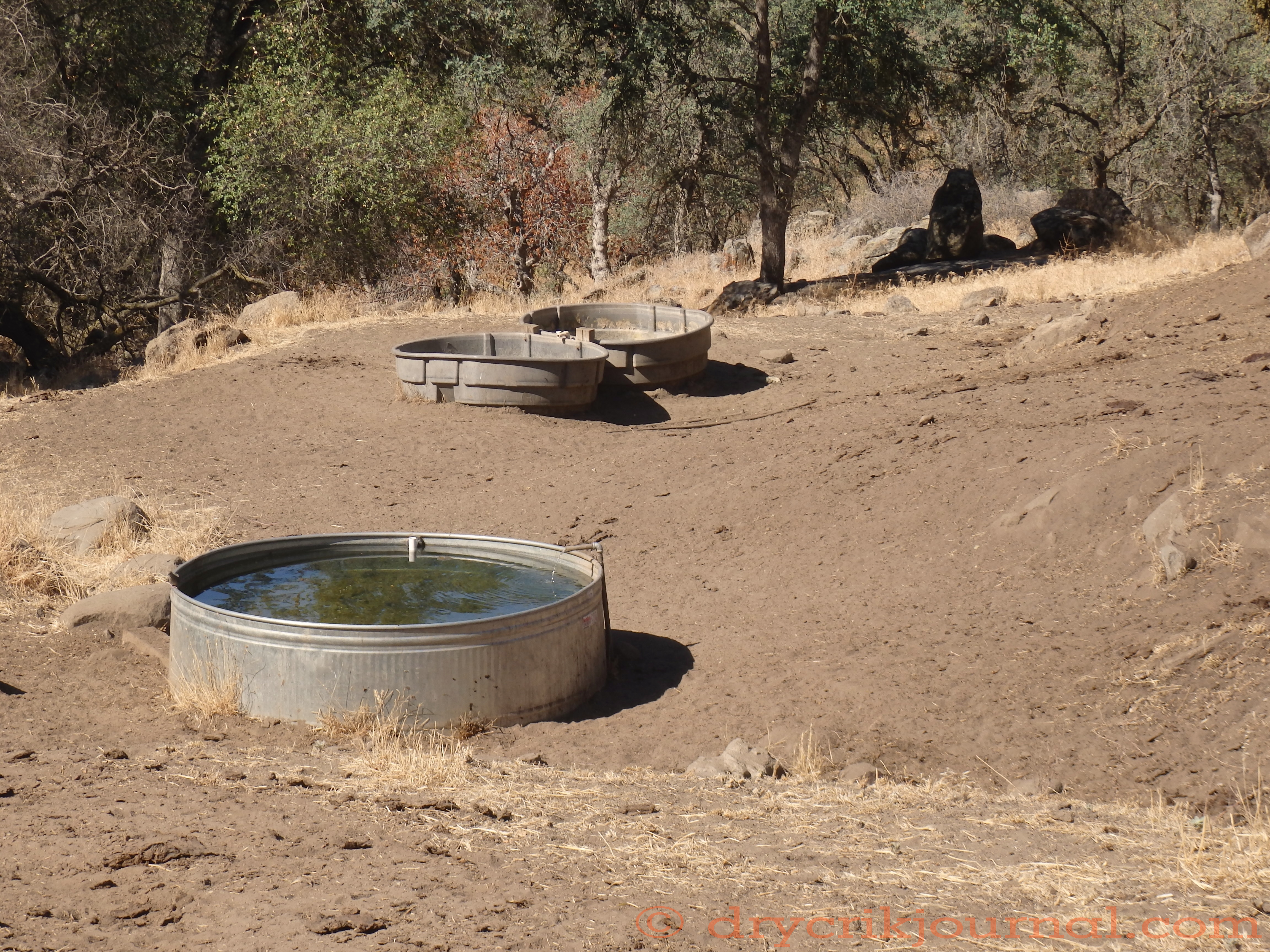 Obviously they hadn’t watered yet today. With a little luck, they will center on this trough instead of the Windmill Spring. Until the solar pump is installed, I’ll have to run the submersible twice a week to keep the top half of the tank full.