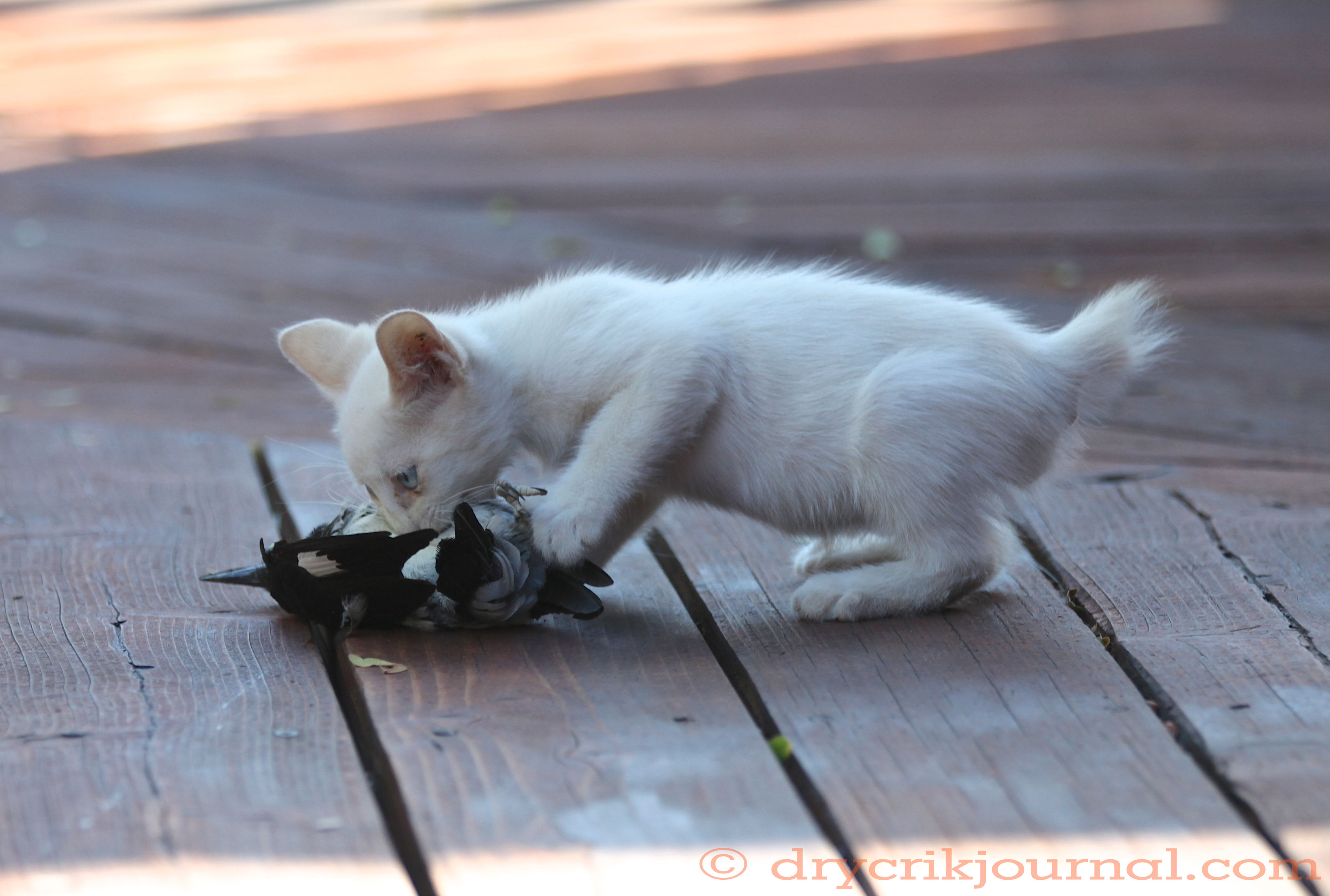 Four years of drought have reduced the quail population on the ranch by at least half, but the covey around the house has fared much better than most. There’s ample cover here from bobcats and Cooper’s Hawks, and they don’t seem concerned with our strain of half-feral cats. But it’s been the regular irrigation of the garden that holds them here most summers.