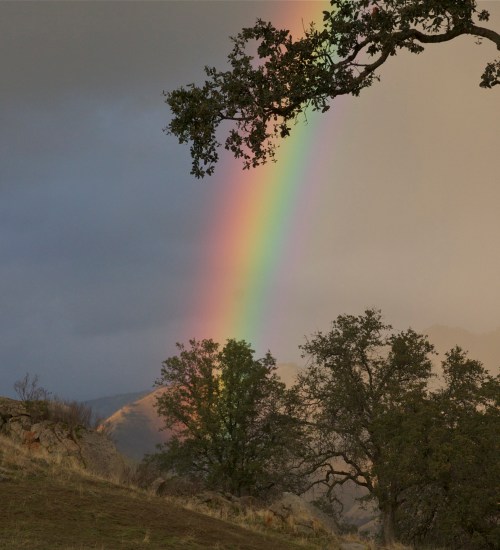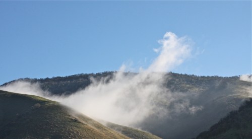 Plans to locate a dozen heifers with the Kubota this morning, missing in our gather around Lake Kaweah, have been postponed, as their suspected location is in the clouds – perhaps this afternoon when their tracks will be fresh. We’d also planned to reacquaint ourselves with the cows and calves we’re gathering on Monday to wean. We’re on schedule, so if we loose a day to rain in May, it’s OK. Either way, we’re going to enjoy these rare weather conditions!
