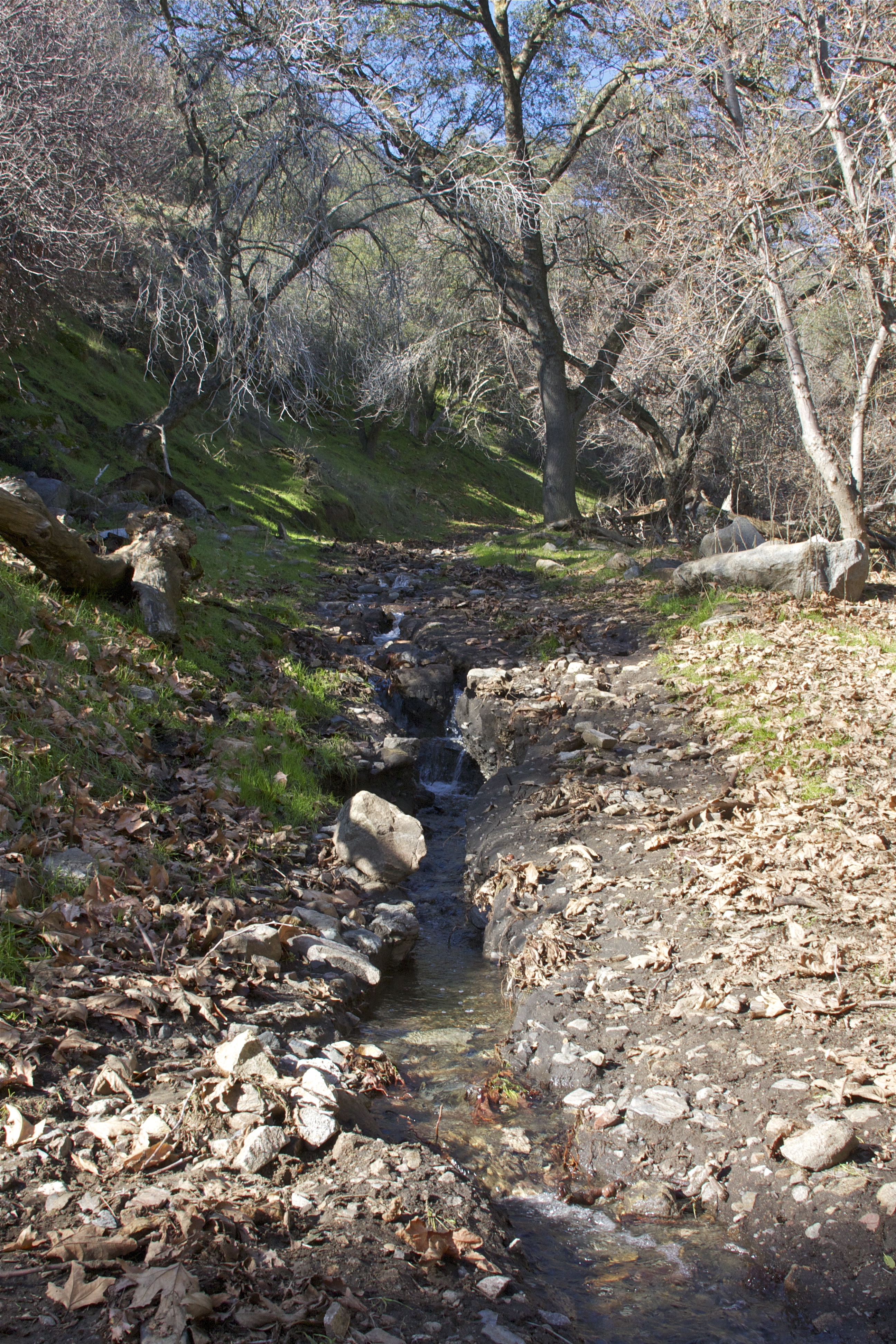 Fifth consecutive morning with measurable rain, now totaling 3.76″, Dry Creek peaked sometime last night (2,200 cfs), down a foot or so at daylight. The rain’s been fairly steady since Friday, but no real downpours. Mostly all running off now that the ground is full, filling stockponds. They’ve shut the Kaweah River off at Terminus Dam, letting Dry Creek have the channel.