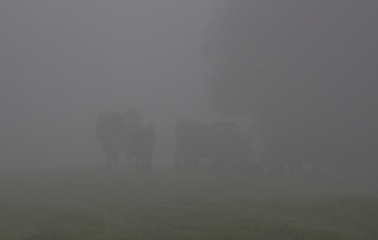Robbin & I left yesterday morning with salt and mineral to look at the cattle in Greasy. We took our cameras hoping to get some early spring photographs, but ran into some cold, low clouds and fog instead. Visibility here in Section 17 was about 100 yards.