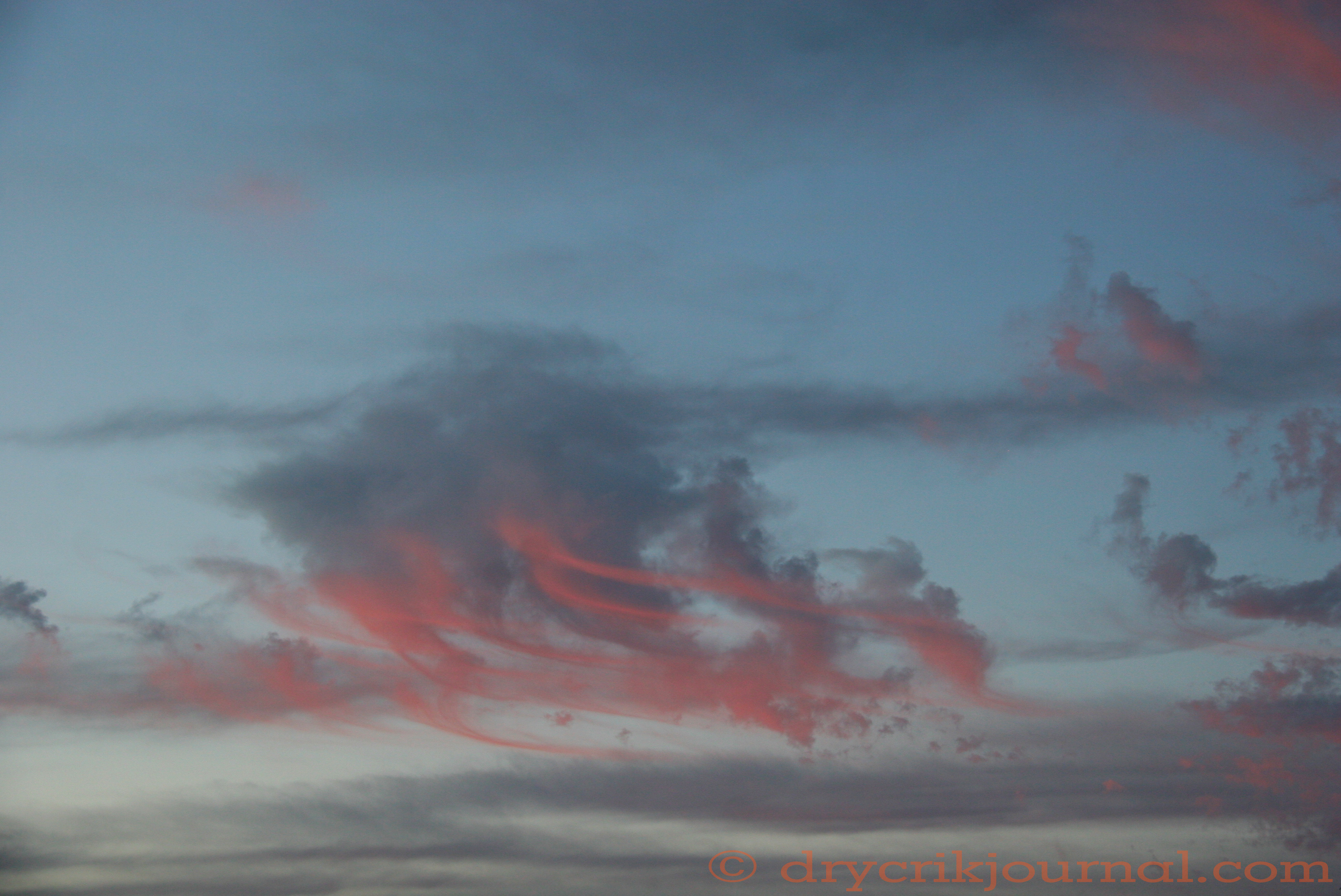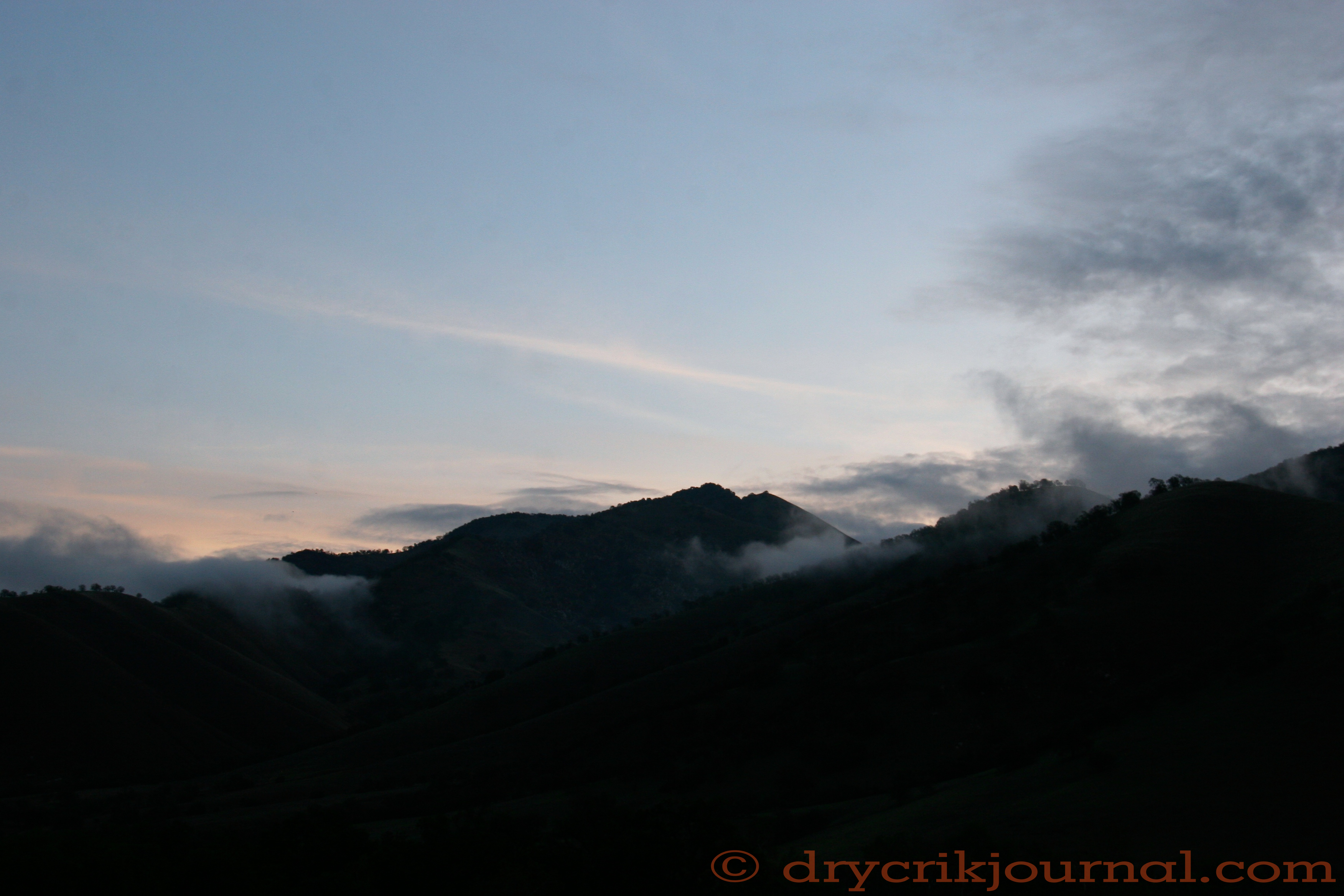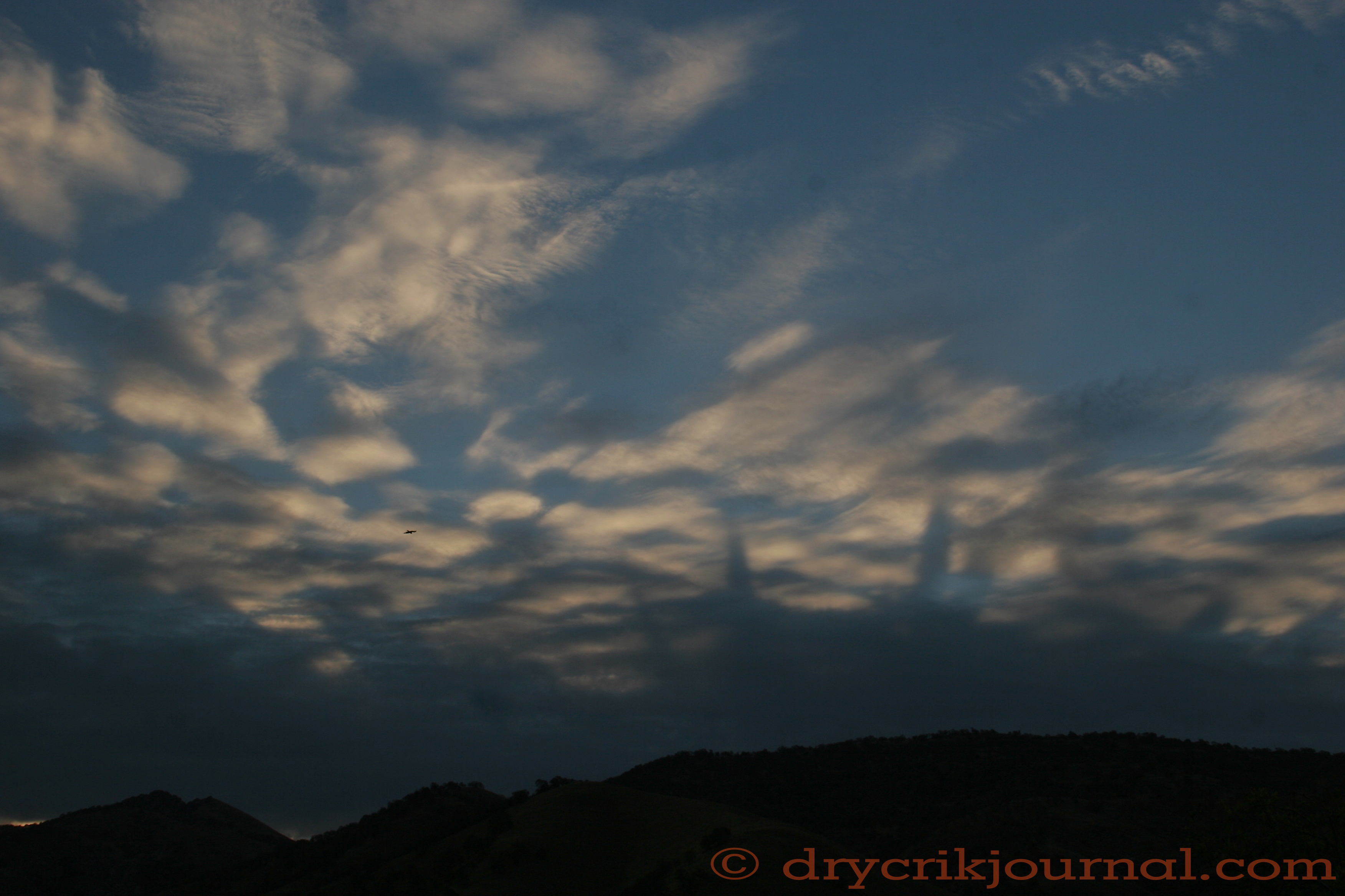 Though this morning had the feel and look of a weather change, what clouds clung to the Sierras have originated out of the Southwest, a light monsoonal flow that meets the trailing tail of a low out of the Gulf of Alaska along the northern California coast—a northern storm already, a good sign. Though it feels like fall with the filtered light, temperature variations are minimal. The remainder of the month will be interesting.