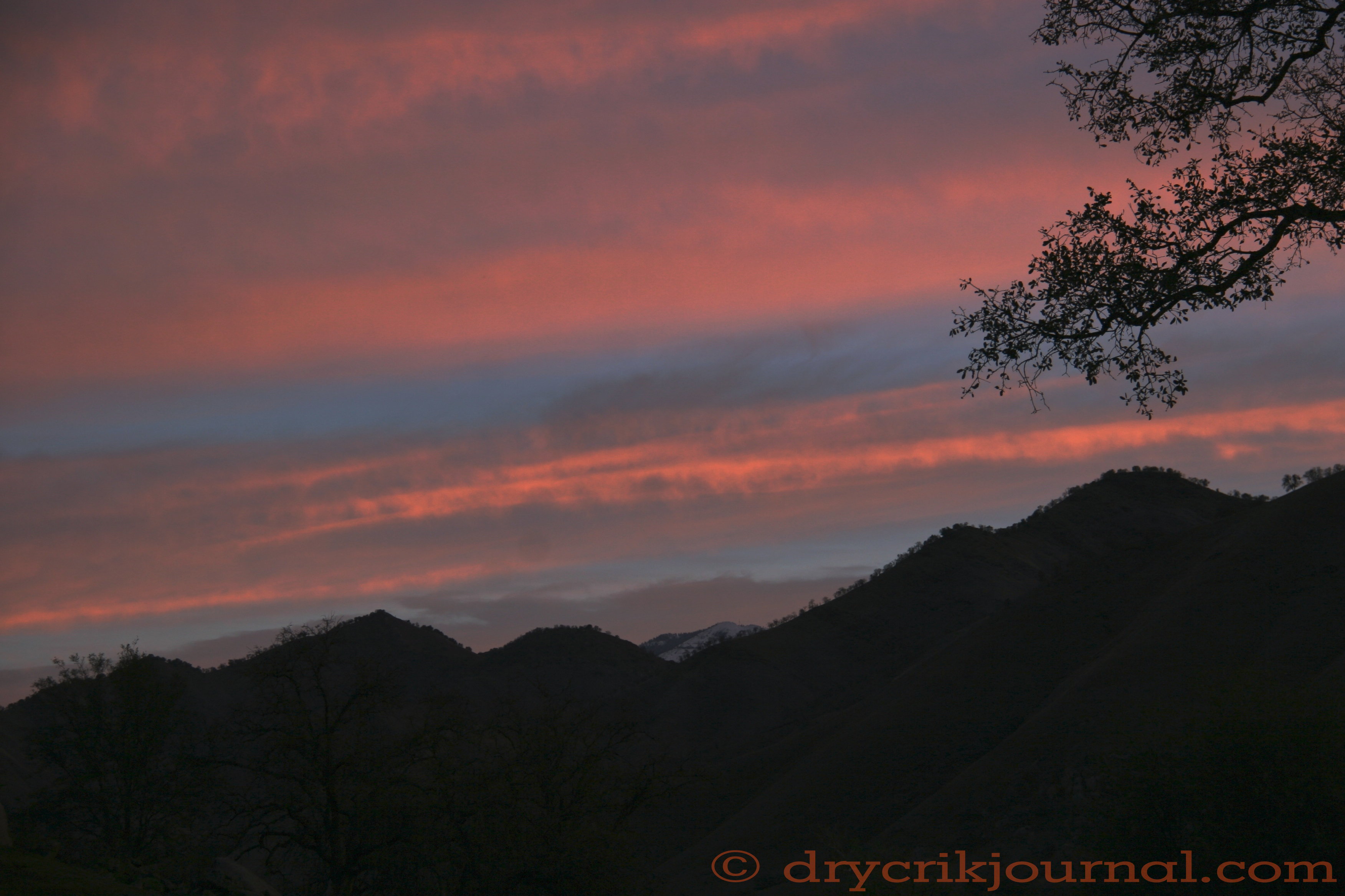 Rain: 0.08″ yesterday afternoon and overnight, monsoonal moisture settling in along the foothills of the central and southern Sierra Nevadas.